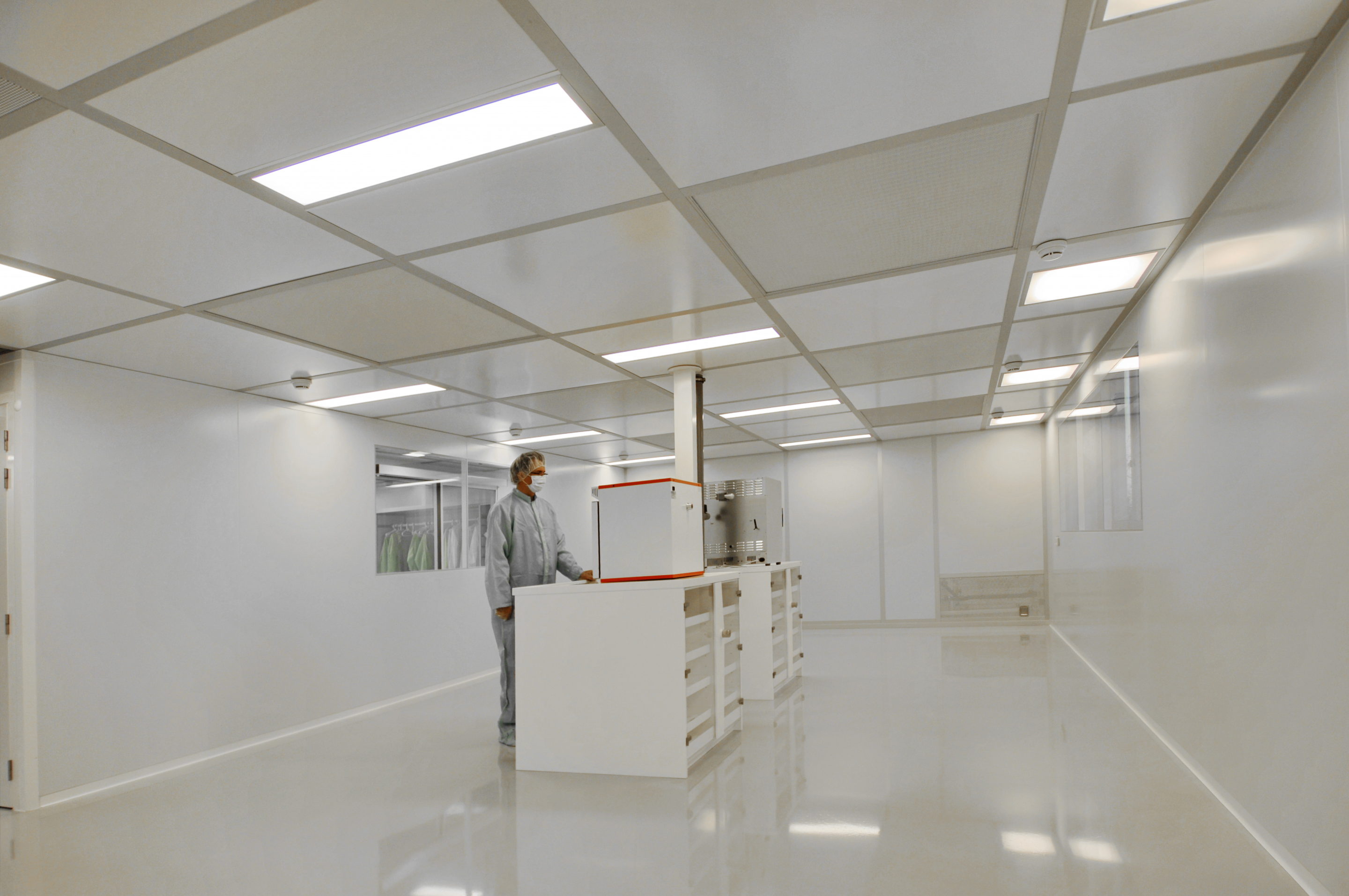 From floor to ceiling, through partition walls and technical material we ensure the design, the manufacture and the implementation of your clean rooms. Your production process, contamination risks linked with the final product and the maintenance and cleaning conditions of the areas are taking into account in order to meet your contamination risks eradication issues. Our systems also allow you to easily control the temperature ranges, the humidity rate and the particulate concentration within your clean rooms. By entrusting your ultra-cleanliness project to us, you are sure that a lot of parameters will be precisely and strictly monitored and that your products, installations and collaborators will be strongly protected.